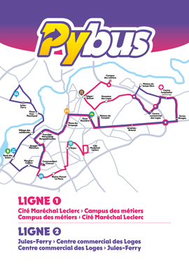 Voir le plan du Pybus, les lignes et les 22 arrêts.